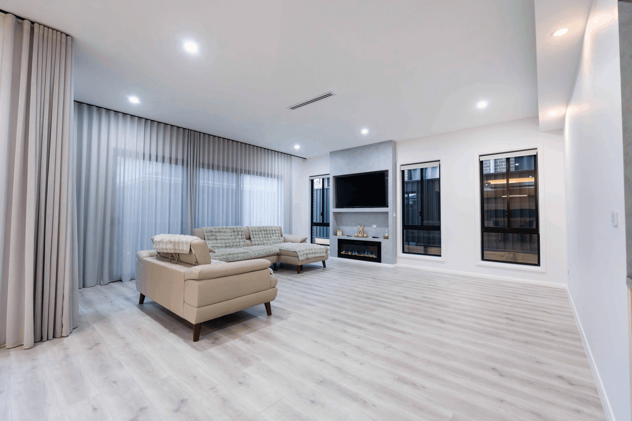 In the evolving suburb of Melonba, this bespoke home is a standout example of contemporary suburban luxury. Featuring a bold mix of concrete render and matte finishes, the facade offers instant street appeal. Internally, the home is equally striking, with soaring ceilings and an open- concept layout that promotes natural flow. Every space is finished with premium textures, from oak timber floors to custom stonework in the bathrooms. The kitchen features dual ovens, a walk-in pantry, and pendant lighting that elevates the entire room. With landscaped surrounds and a peaceful neighbourhood setting, this property is both modern and timeless.
